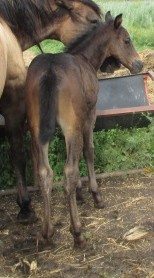 This is a great performance bred filly that is homozygous black (EE). She has Hall of Famers, AQHA Pt. Earners, & money earners all over her pedigree. This filly is quick on her feet & a pretty mover. We can not wait to see what this filly grows into, she is bred to be a good one.
