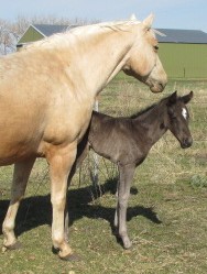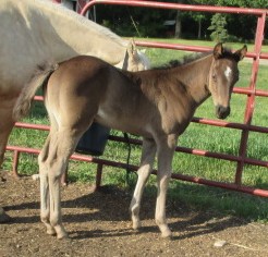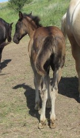 This is a fancy black filly with great conformation and a pretty mover. She has a proven performance pedigree on top & bottom which will maker her a great performance prospect. Her dam's sire Genuine Diamond Doc is a full brother in blood to the great SHINING SPARK. It will be fun to watch this filly grow & fill out, she will be a real looker.