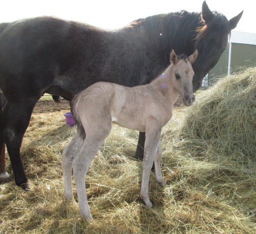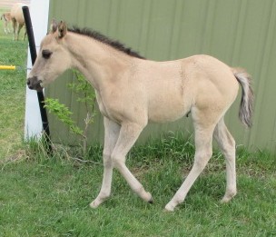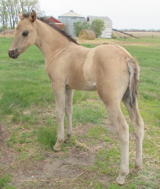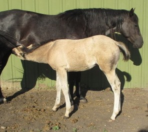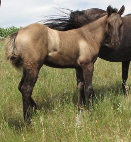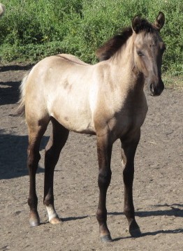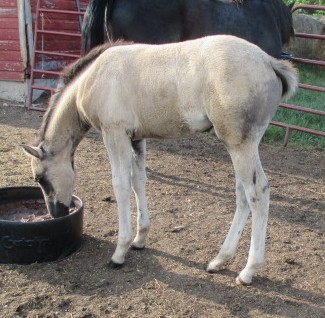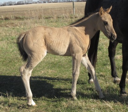 This is a fancy filly that is a real pretty mover, she just floats across the ground. She already has a natural cross over in the front and is a hard stopper. She has great conformation and will be a real looker when she matures. We had her color tested her and she is homozygous black (EE). I can not wait to see what this filly grows into.
