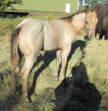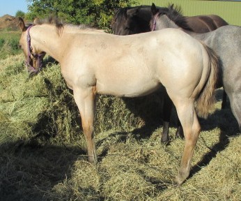This is a real fancy colt that is a very pretty mover, he just floats across the ground. He naturally is a hard stopper & great turn around already. He is the whole package cute headed & very athletic. He has a powerful proven performance pedigree on top & bottom side. He will be a top notch performance prospect in any event. I can not wait to see what this colt grows into. He will also be a great stallion prospect. Roan gene test is completed & he does have a roan gene making him a buckskin roan.